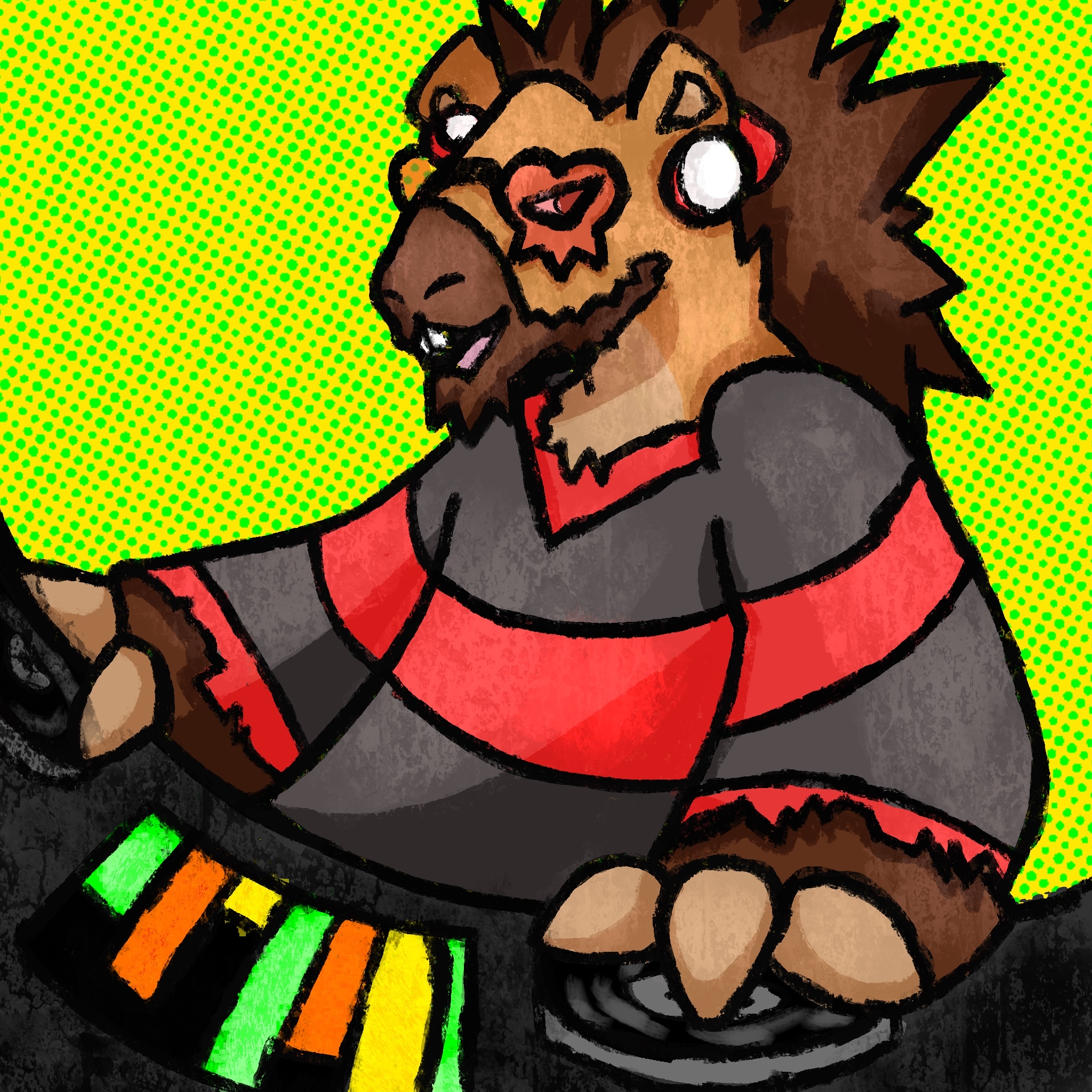 Funky Beasts is a hybrid Art RPG and Dice Roleplay inspired by settings such as Jet Set Radio and Bomb Rush Cyberfunk, as well as Beastars and Brand New Animal. You can start playing by joining the Discord, linked in the sidebar. This website aims to provide necessary information in a cleaner, more organized manner than it is in the Discord server. If you would like to apply to be a player when it opens up, please contact Lycan_Party on Discord to get on the waiting list.